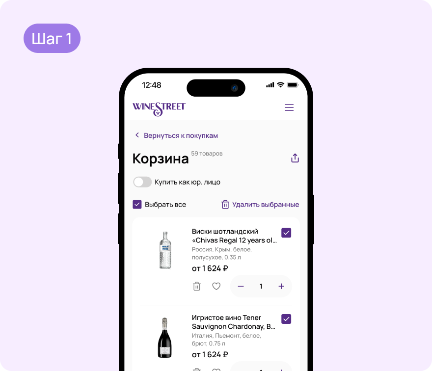 Winestreet предлагает большой ассортимент и выгодные цены. В разделе "Новинки" появляются свежие поступления, а в "Хитах продаж" - самые популярные позиции. Мы подбираем качественные напитки, чтобы каждый клиент мог выбрать алкоголь по вкусу и случаю.